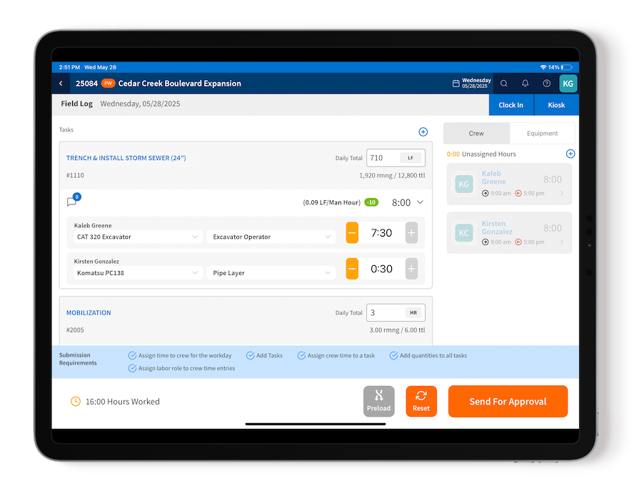 Effective field management software also simplifies the process of submitting daily field logs. With straightforward tools for assigning crew hours, entering production quantities, and capturing job site updates, foremen can save hours documenting the day while keeping the office informed without unnecessary steps.